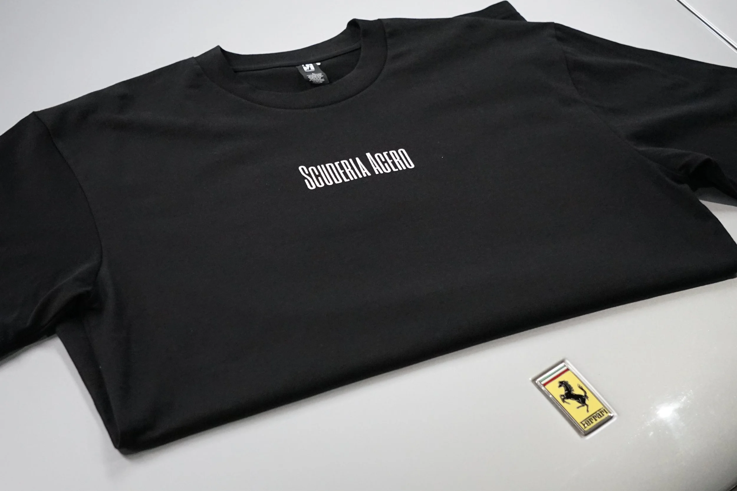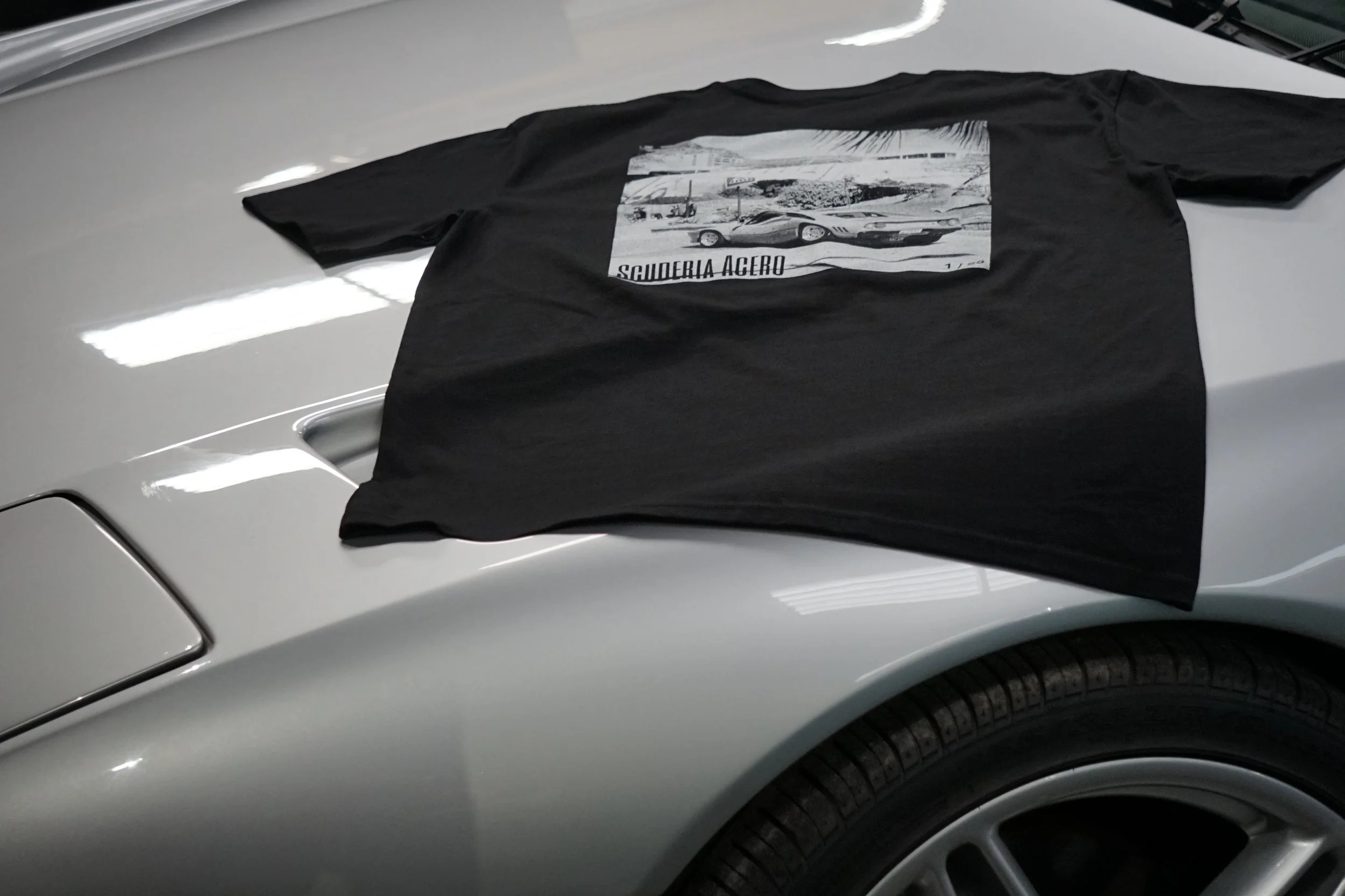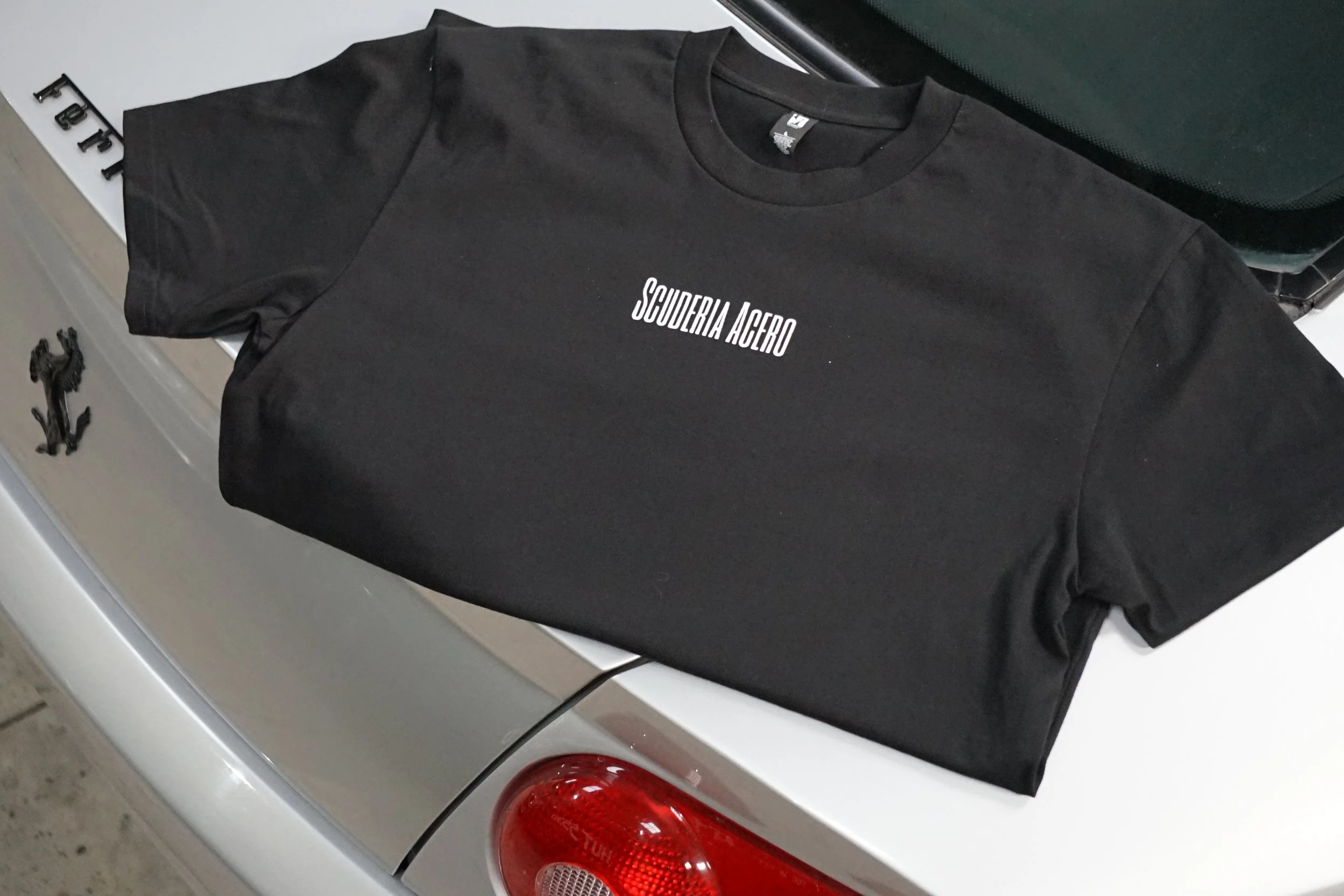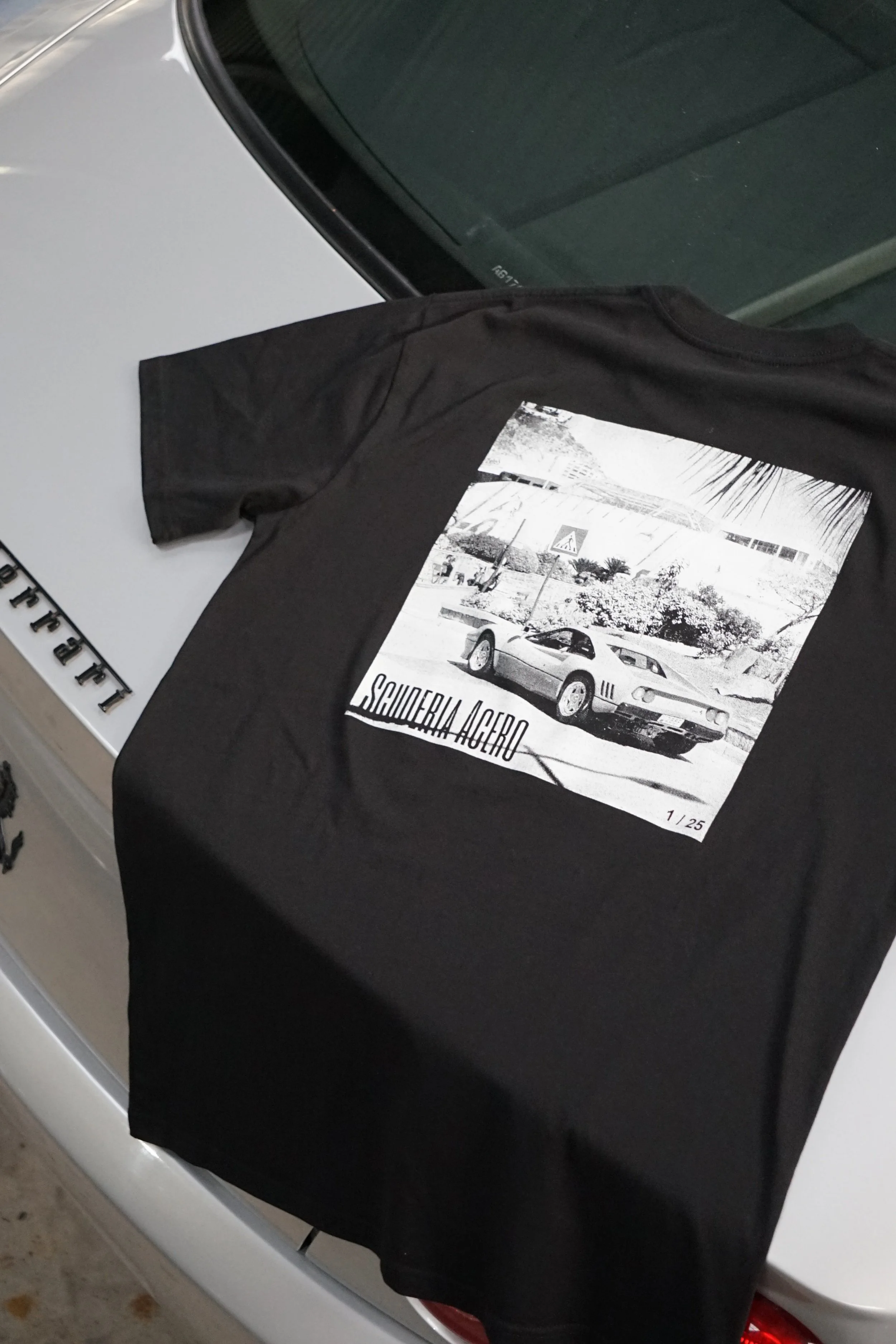 Italian automotive lifestyle clothing by Scuderia Acero - Our extremely limited edition T-Shirts come in batches of only 25, and each batch features a unique Italian automotive print on the rear from photo’s taken during automotive adventures by Maple House Classic Cars.